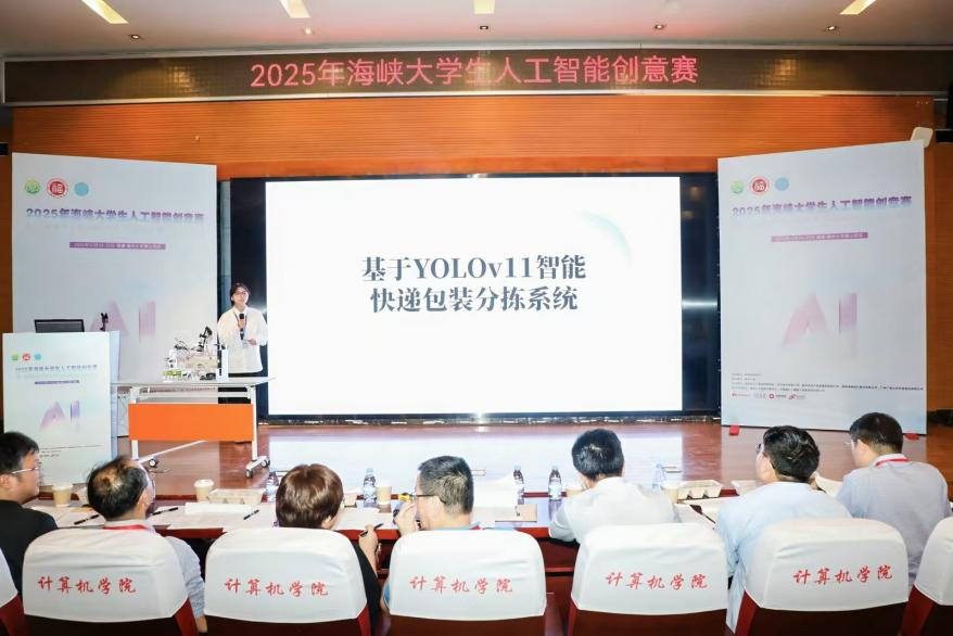 另一支由陈宏、王佳玲、李志鸿、林怡希、张炜强、王建组成的团队,在陈秀丽、刘用奇老师的指导下,推出“基于YOLO v11智能快递包装分拣系统”,其高效的分拣逻辑和技术实现,在决赛现场的实物展示环节表现亮眼。
